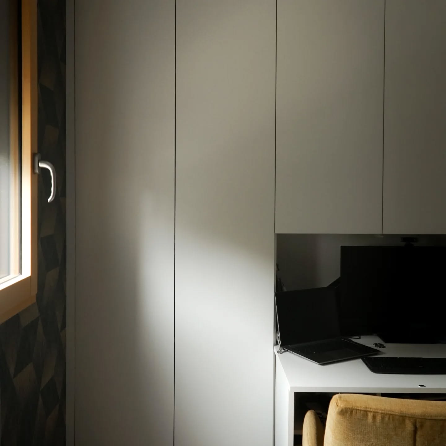Dans une ambiance feutrée et propice à la concentration, cet aménagement illustre parfaitement l’équilibre entre esthétisme et fonctionnalité. Derrière des façades épurées, le placard révèle un espace de travail discret, pensé pour s’intégrer naturellement au quotidien sans jamais encombrer la pièce.